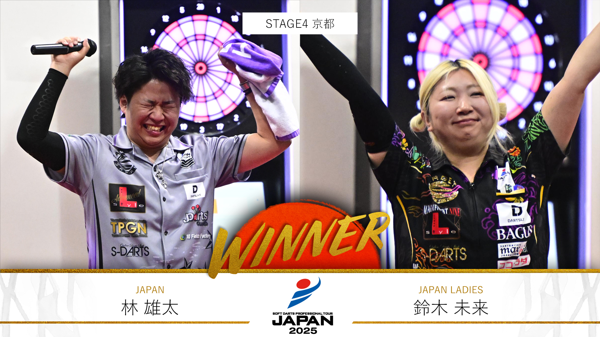 TOPICS一覧 2025.06.03 16:00 コラム 【JAPAN2025 第4戦】林雄太が悲願の初優勝、女子部門は鈴木未来が開幕4連勝 6月1日(日)にプロダーツJAPAN 2025シーズンの第4戦が京都で開催された。 第4戦のJAPAN優勝は林雄太。JAPAN LADIES優勝は鈴木未来。 【見逃し配信】 ダーツライブ公式動画配信サービス「ダーツライブTV」にて、見逃し配信を視聴いただけます。 視聴はダーツライブTVから! 記事の続きはコチラ