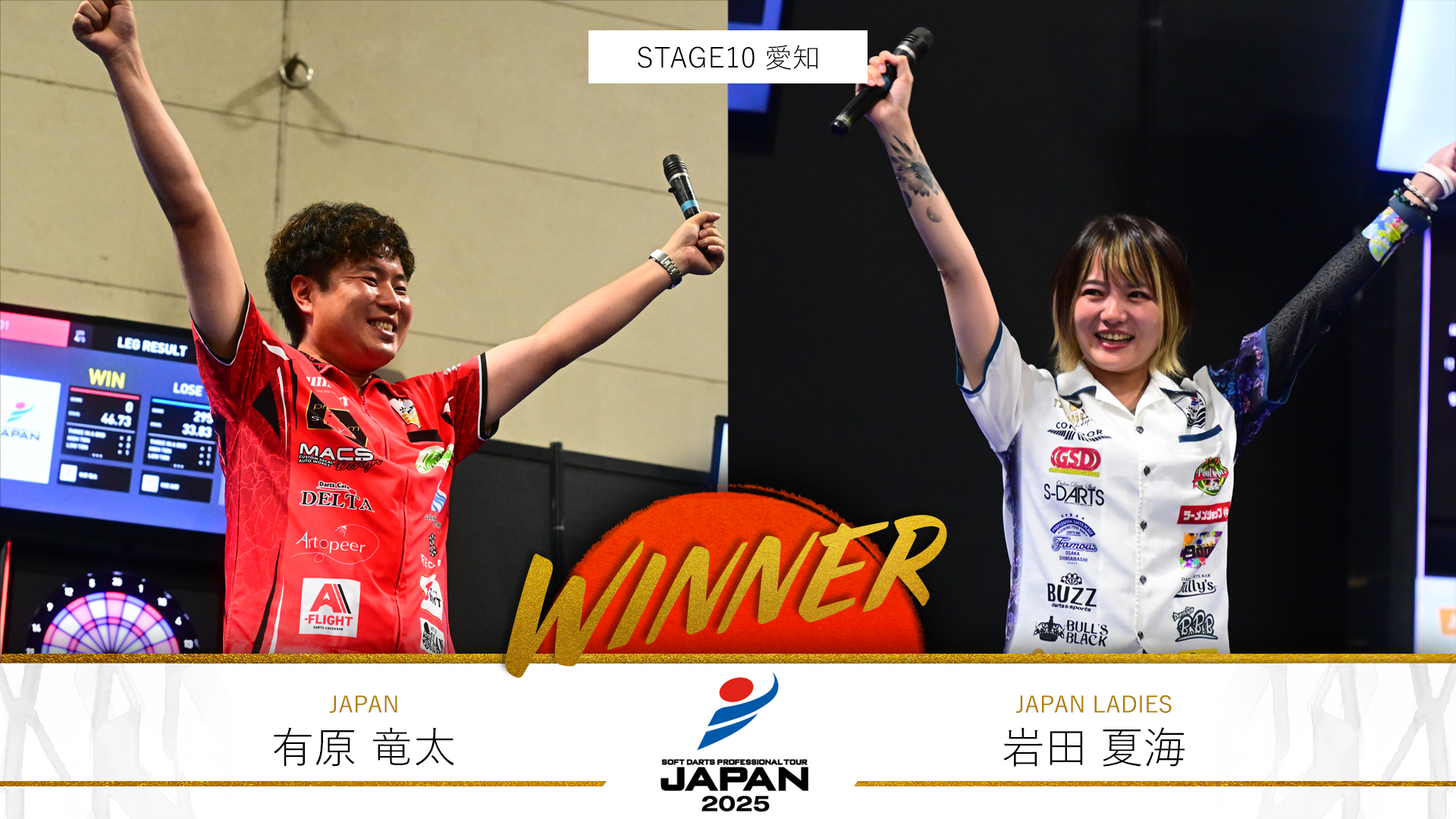 TOPICS一覧 2025.09.01 16:00 コラム 【JAPAN2025 第10戦】有原竜太が2連覇達成! 女子は岩田夏海が今シーズン初優勝 8月31日(日)にプロダーツJAPAN 2025シーズンの第10戦が愛知で開催された。 第10戦のJAPAN優勝は有原竜太。JAPAN LADIES優勝は岩田夏海。 【見逃し配信】 ダーツライブ公式動画配信サービス「ダーツライブTV」にて、見逃し配信を視聴いただけます。 視聴はダーツライブTVから! 記事の続きはコチラ