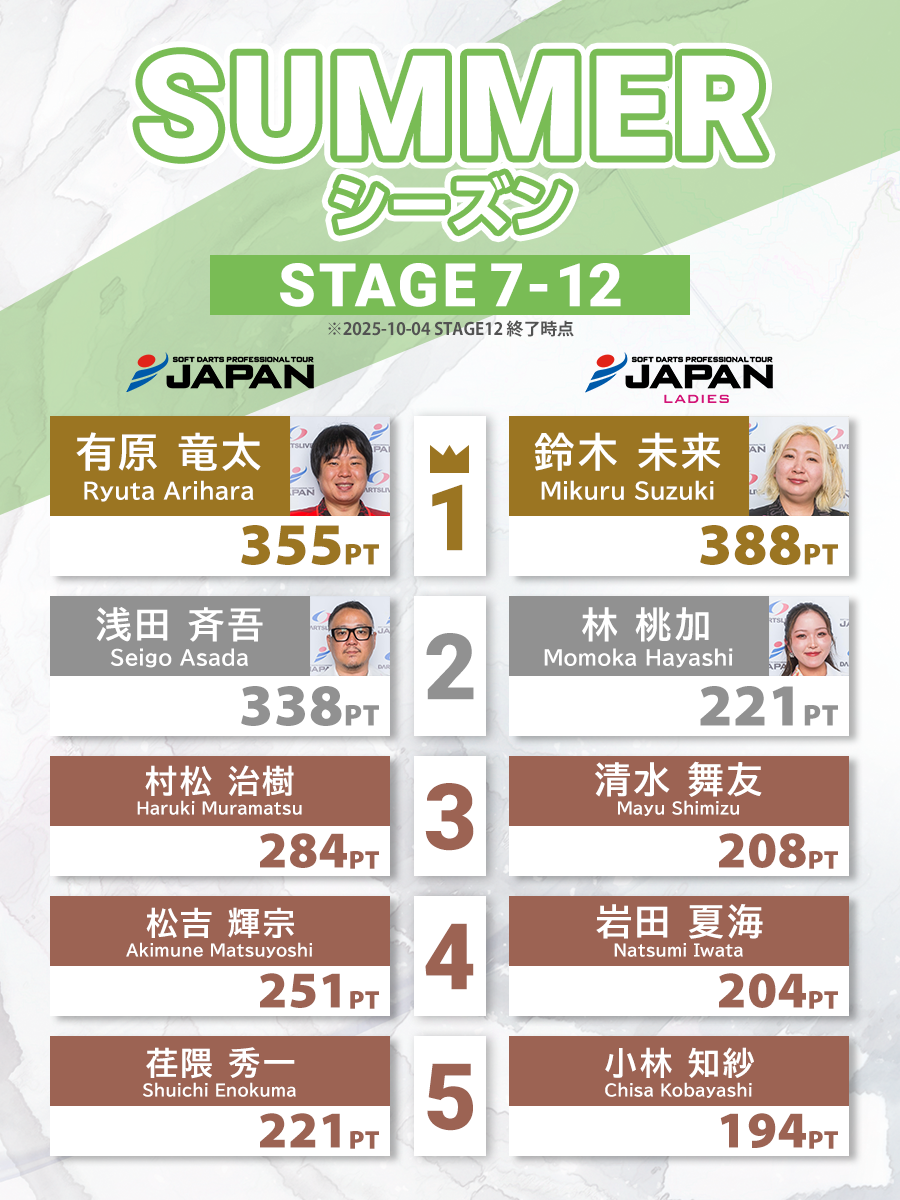 STAGE7~12終了に伴い、SPRINGシーズンの順位が確定しました。